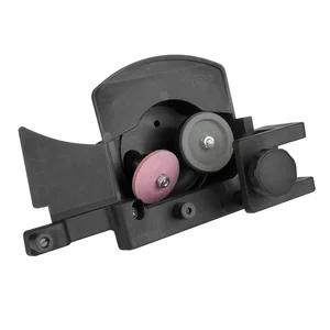 Der mitgelieferte 2-Scheiben Messerschärfer ist leicht zu montieren und zu bedienen. Da er nicht fest an der Maschine montiert ist, bleibt er vor Verschmutzungen geschützt.