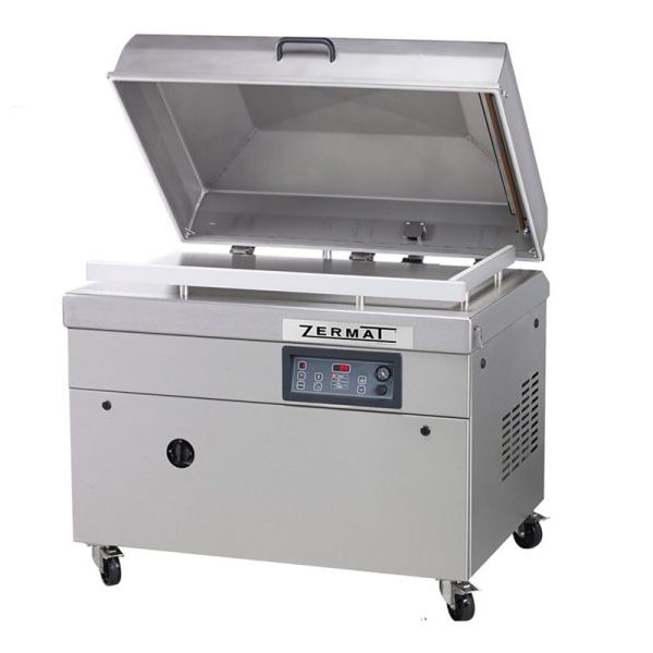 Industrielle Vakuumverpackungsmaschine mit extra großer Kammer für die Verpackung großer Artikel oder für eine maximale Anzahl an Beuteln pro Zyklus. Ausgestattet mit einer leistungsstarken Busch-Vakuumpumpe (300 m³/h), ist sie komplett aus Edelstahl gefertigt und verfügt über eine Doppelkammer zur Minimierung von Ausfallzeiten während des Verpackungsprozesses. Drei verschiedene Schweißbalkenkonfigurationen stehen zur Verfügung.