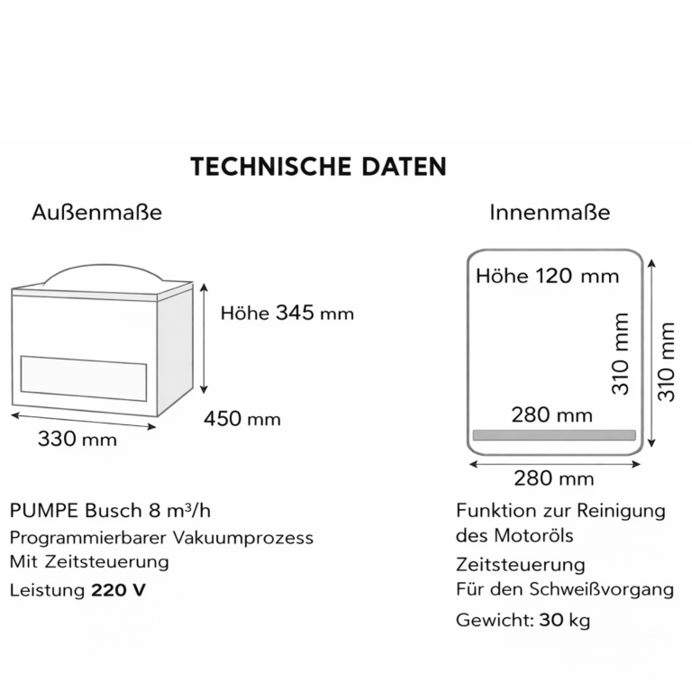 - Innenabmessungen der Kammer: 375 x 430 x 150 mm