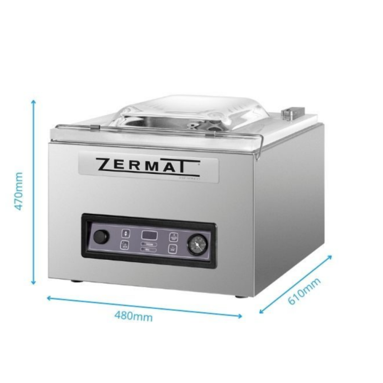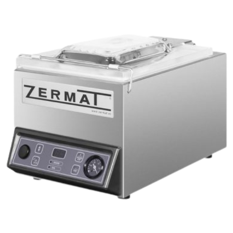 Der kompakteste professionelle Vakuumierer von ZERMAT bietet dieselbe überragende Vakuumleistung wie unsere Industriemodelle. Seine Vielseitigkeit ist grenzenlos: Er kann mit jedem Vakuumbeutel verwendet werden .
